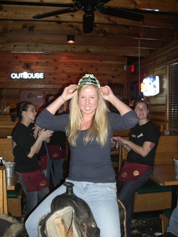 Et voila la petite surprise pour Mauri, dans ce resto, ils font monter tous les gens donc c'est l'anniversaire sur une celle de cheval et on chante et les serveurs hurlent dans le resto et tout le monde regarde lol ! Donc c'était bien marrant... et ce que vous voyez sur la tête de Mauri c'est un diadème d'anniversaire, apparemment, ici c'est une coutume, quand c'est ton anniversaire (oui bien sur que pour les filles, quelle question !), tu dois porter le joli petit diadème avec écrit happy birthday !